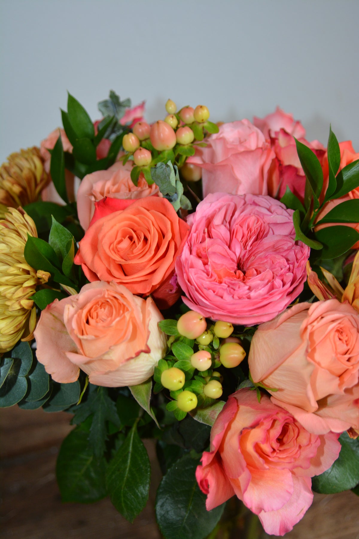 Celebrate the beauty of gratitude with our stunning arrangement featuring pink, purple, and orange hues. The vibrant colors are complemented with the delicate scent of eucalyptus, creating an uplifting and refreshing atmosphere. Whether you're looking to express gratitude to a friend, family member, or colleague, this arrangement is the perfect gift to convey your admiration and appreciation. Each bloom is carefully selected and expertly arranged to create a masterpiece that will surely leave a lasting impression. Show your gratitude in a way that words cannot express with our exquisite Gratitude arrangement.