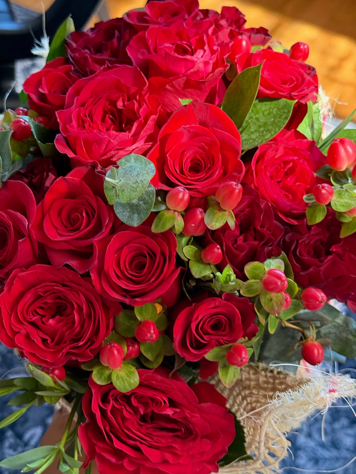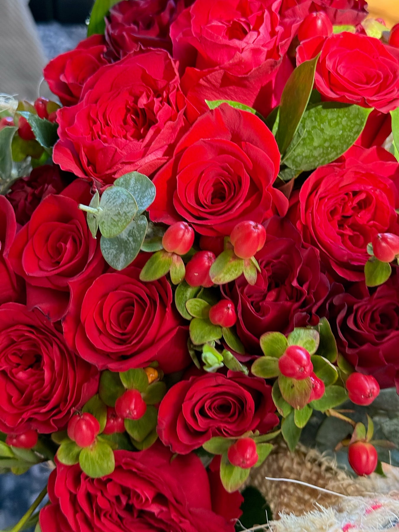 Each stem is carefully chosen and expertly arranged to create a striking visual display that will make a statement in any room. Whether it’s for a special occasion or just to show someone you care, our Red Red Wine arrangement is sure to leave a lasting impression.